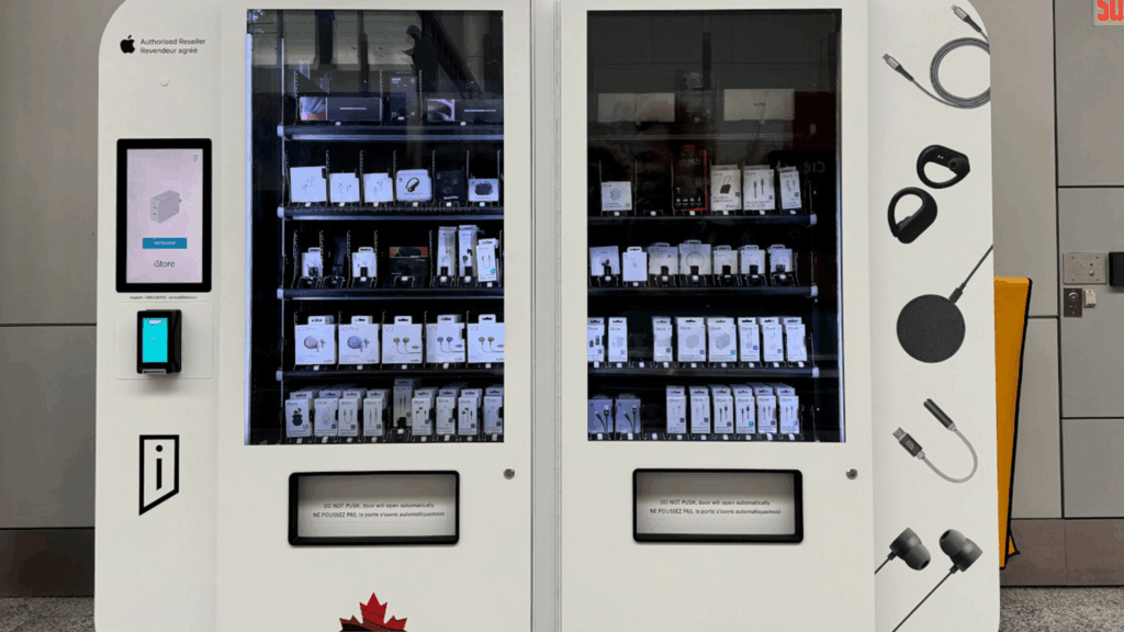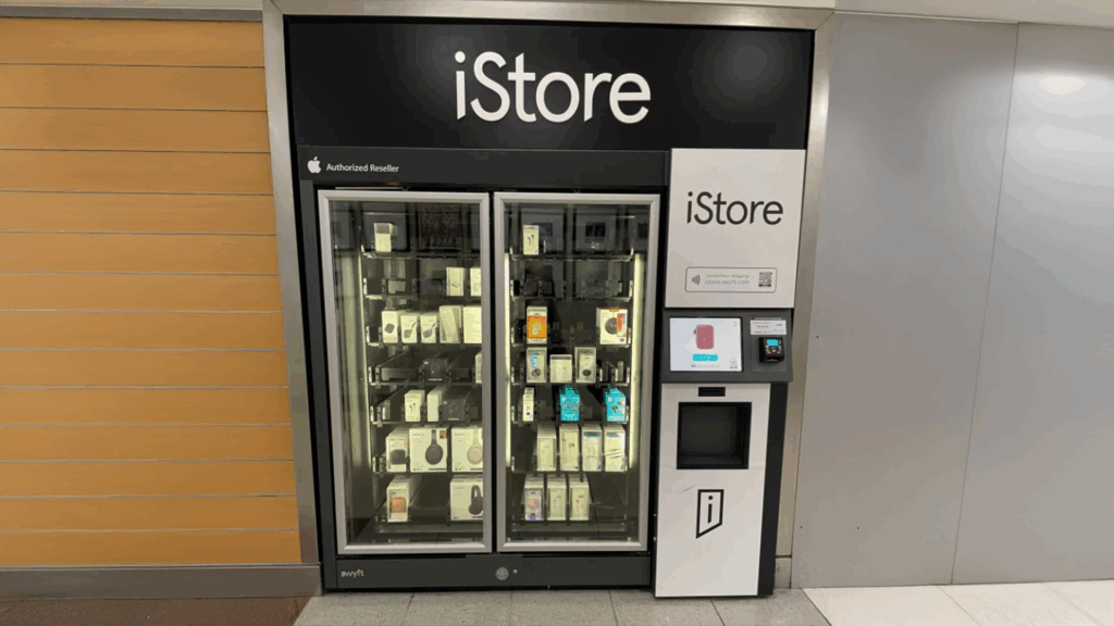 - Curated assortment: Stocked with essentials like iPhones, AirPods, and chargers, each unit functions as a compact Apple Store.